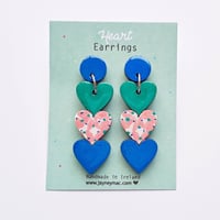 Heart shaped earrings, handpainted colourful wooden glitter dangle earrings